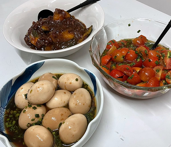 ニラダレトマト・かぼちゃのいとこ煮・味玉
